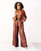 il pantalone ha l’elastico sul retro, tessuto lucido